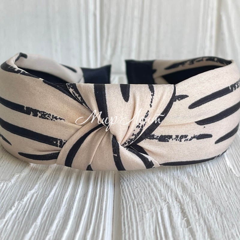 Обруч софт чалма, 4 см, чорні мазки на бежевому, шт.