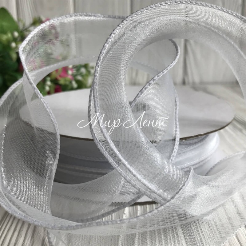 Органза з дротяним кантом, 3 см, блідно-сірий, рулон 23 м