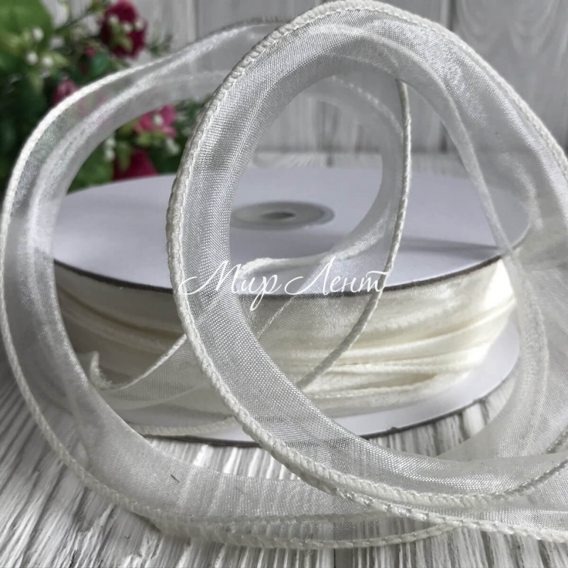 Органза з дротяним кантом, 3 см, молочний, рулон 23 м