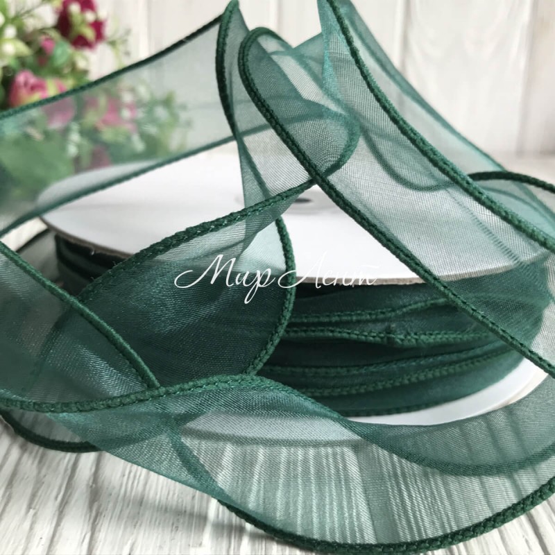 Органза з дротяним кантом, 3 см, нефритовий, рулон 23 м