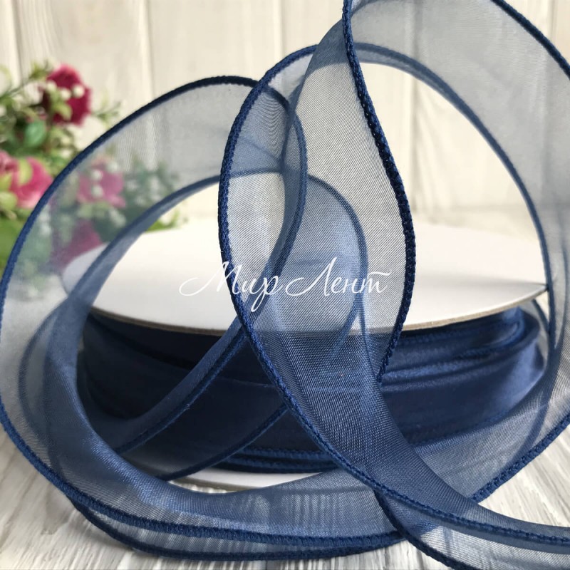 Органза з дротяним кантом, 3 см, сапфировий, рулон 23 м