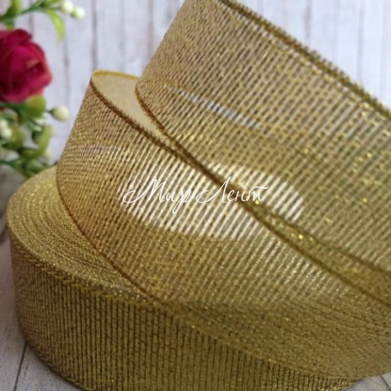 Парча 2,5 см, золото, рулон 23 м