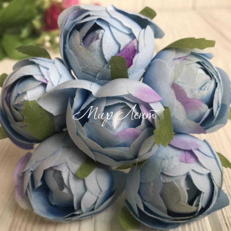 Півонія тканинний закритий, 4 см, блакитний, упаковка 36 шт.