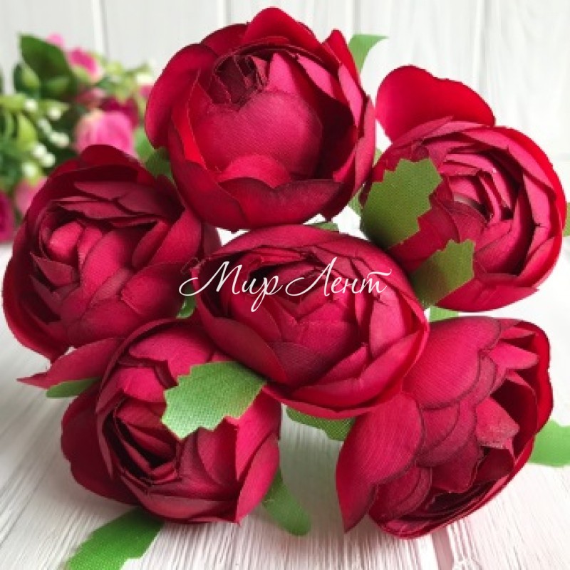 Півонія тканинна на гілочці закрита, 4 см, бургунді, упаковка 30 шт.