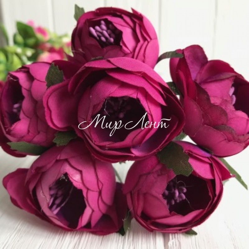 Півонії тканинні на гілочці, 4 см, малиново-фіолетові, упаковка 30 шт.