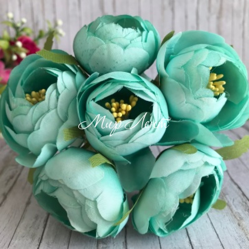 Півонії тканинні на гілочці, 4 см, тіффані, упаковка 30 шт.