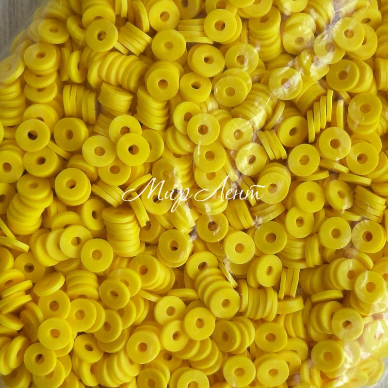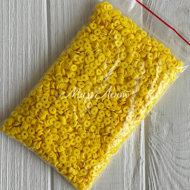 Плоскі намистини, 6 мм, жовті, маленька упаковка 50 г