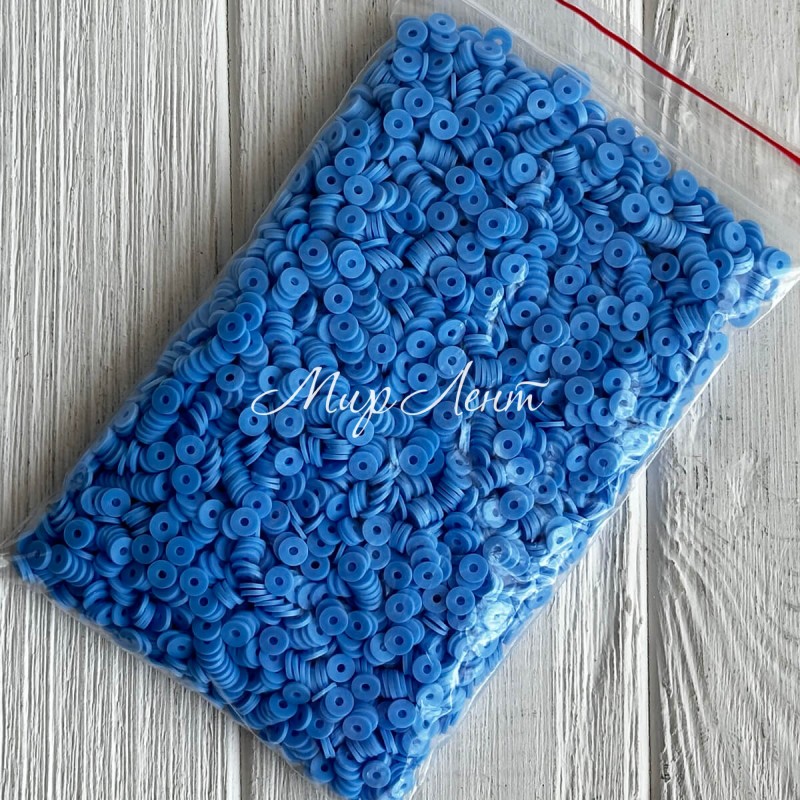Плоскі намистини, 6 мм, світло-сині, маленька упаковка 50 г