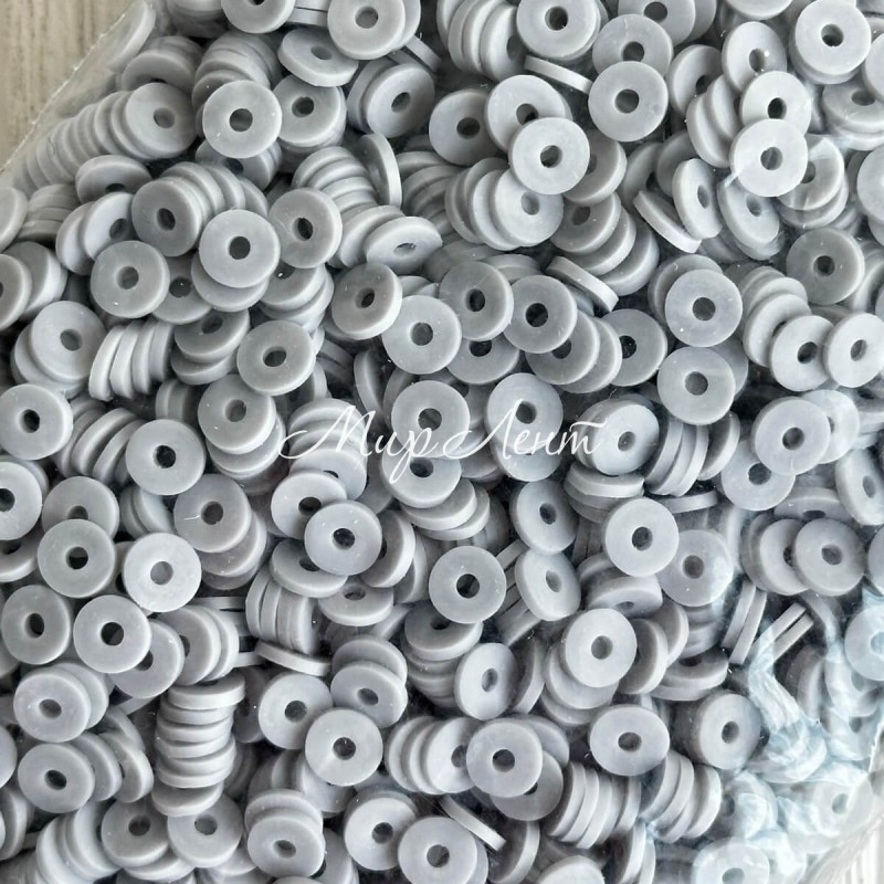 Плоскі намистини, 6 мм, сірі, маленька упаковка 50 г