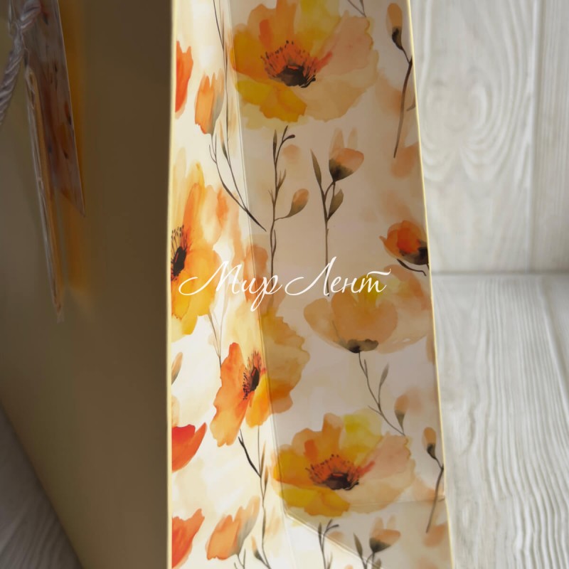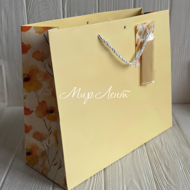 Подарунковий пакет з квітковим принтом (J01189), 31х26х12 см, жовтий, упаковка 12 шт.