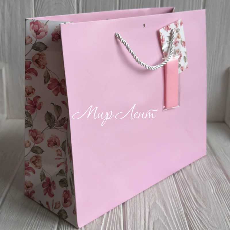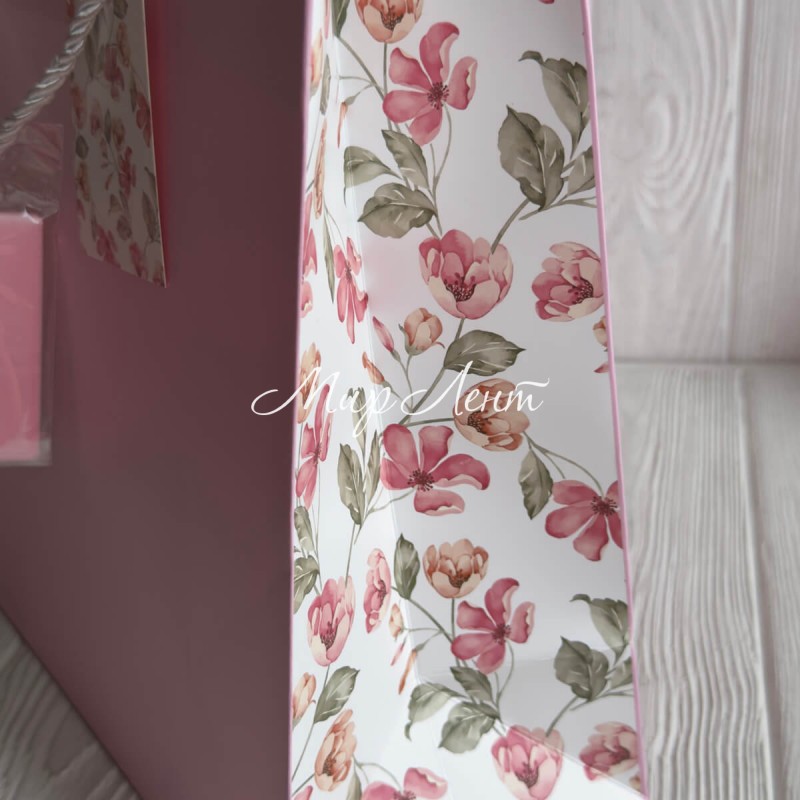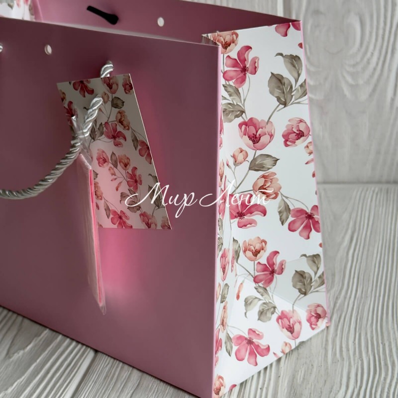 Подарунковий пакет з квітковим принтом (J01189), 31х26х12 см, рожевий, упаковка 12 шт.