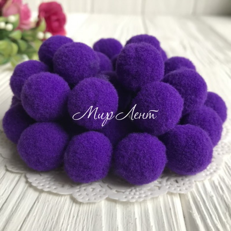 Помпони оксамитові, 1,5 см, темно-фіолетові, упаковка 1000 шт.