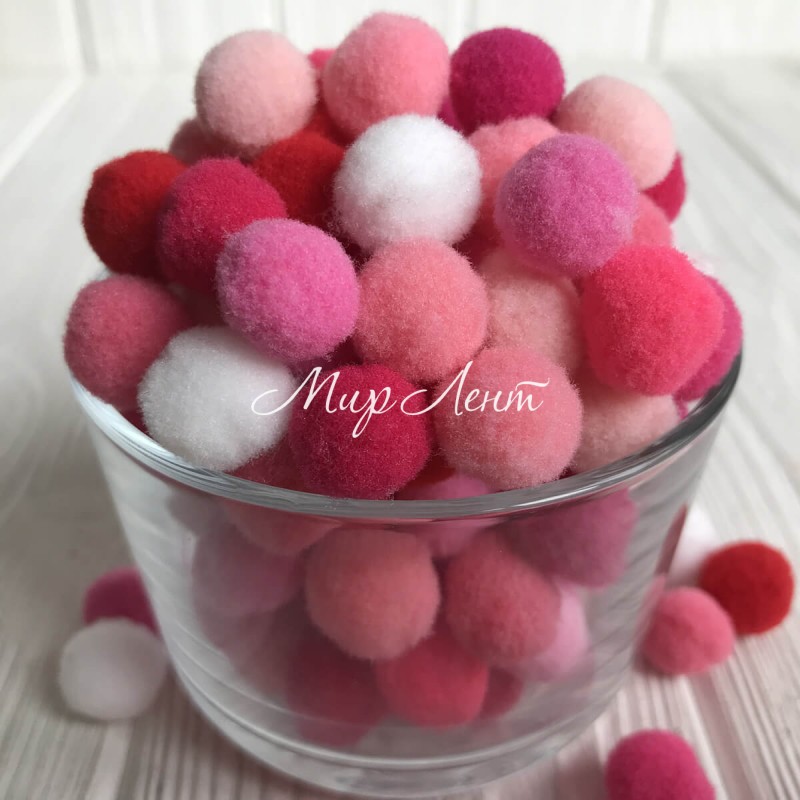Помпоны (мікс), 1,5 см, рожевий мікс, упаковка 1000 шт.