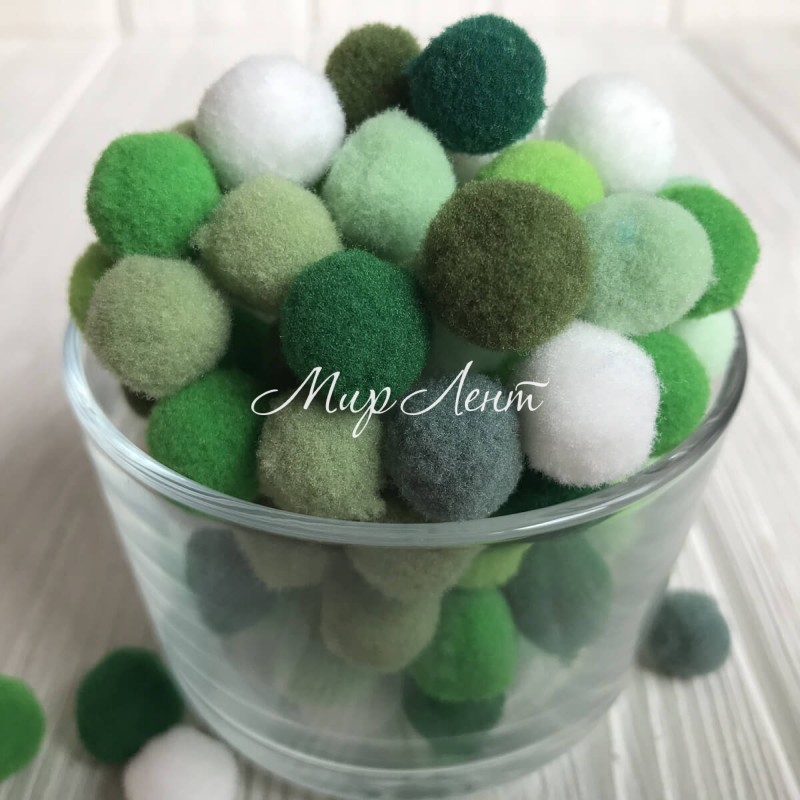Помпоны (мікс), 1,5 см, зелений мікс, упаковка 1000 шт.