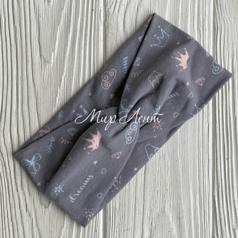 Пов'язка дитяча стрейч кулір, 8х17 см, сіра с коронами, шт.