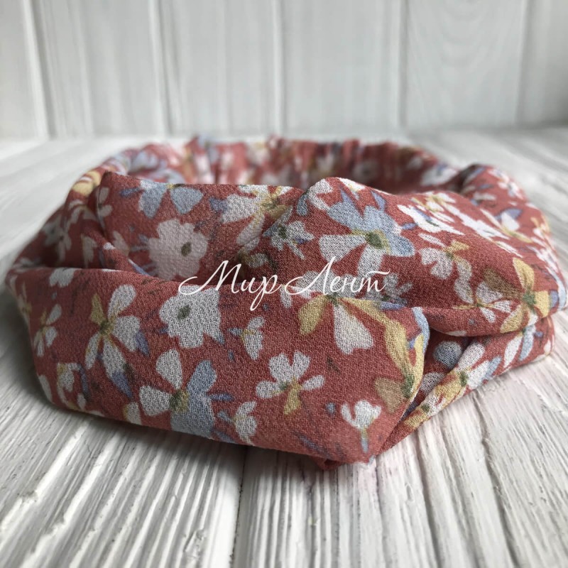 Пов'яка-переплетення шифон в квіточку, 6 см, кораловий, шт.