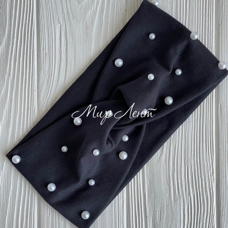 Повязка трикотаж із жемчугом, 11х21 см, чорна, шт.