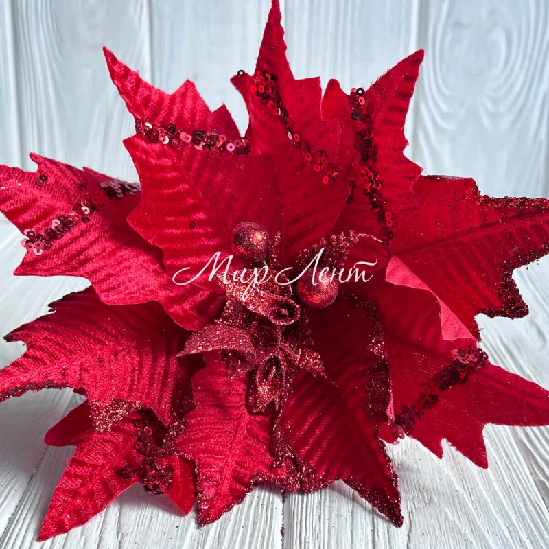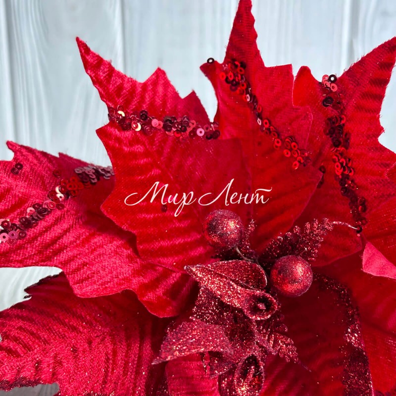 Пуансеттія бархатна (С30262), 26х30 см, червона, шт.