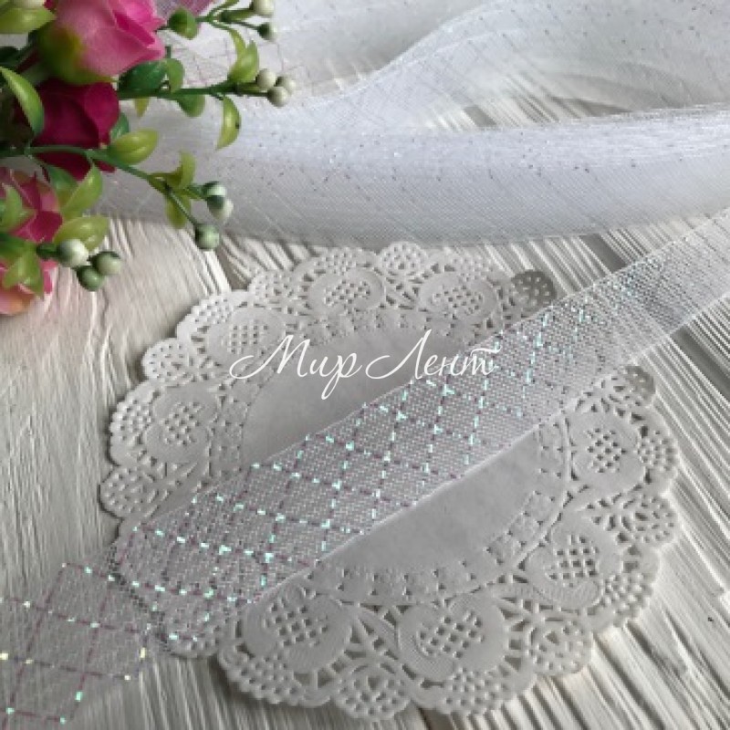 Регілін, 2 см, білий з перламутром, рулон 23 м