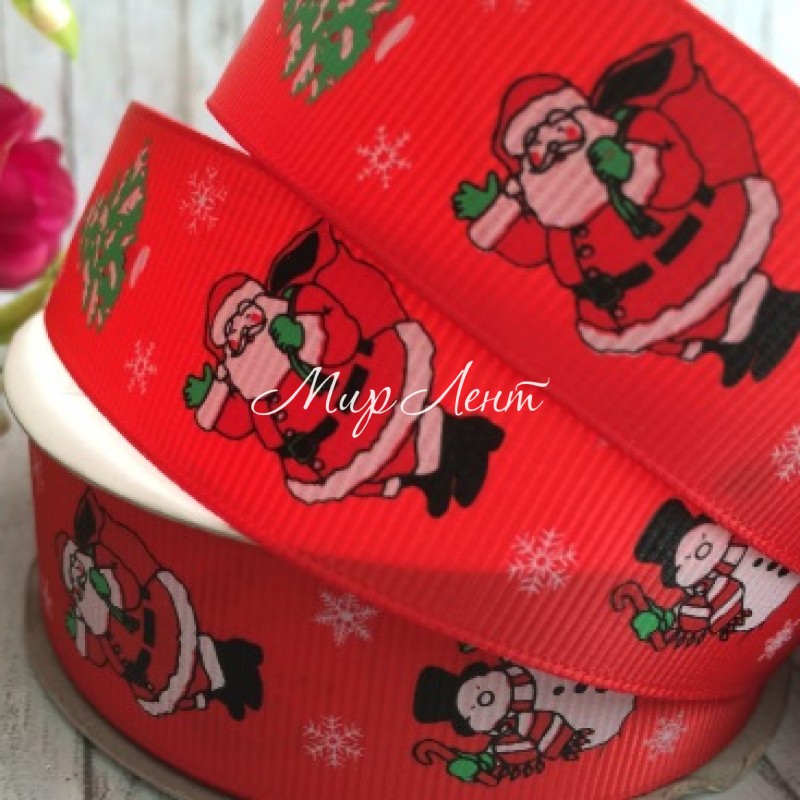 Репс 2,5 см, Санта-сніговик-ялинка, червоний, рулон 23 м