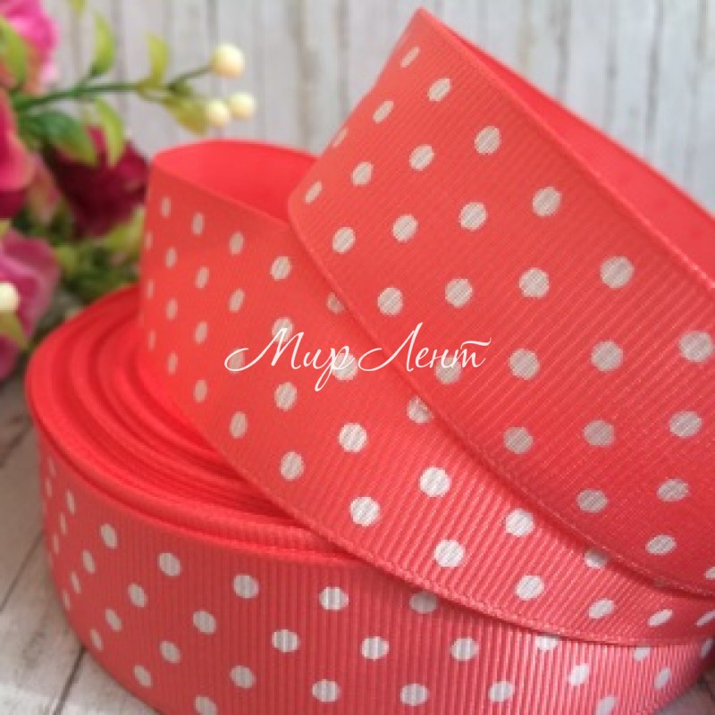 Репс 2,5 см горох, кораловий, рулон 23 м