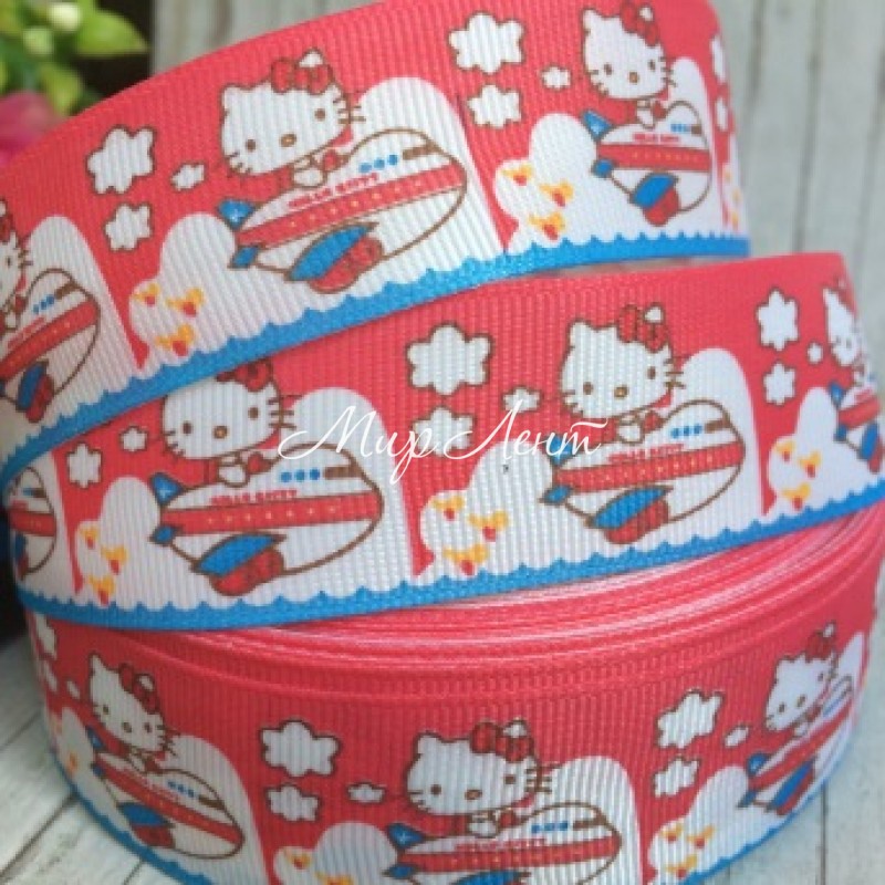 Репс 2,5 см, Кітті в літаку, кораловий, рулон 23 м