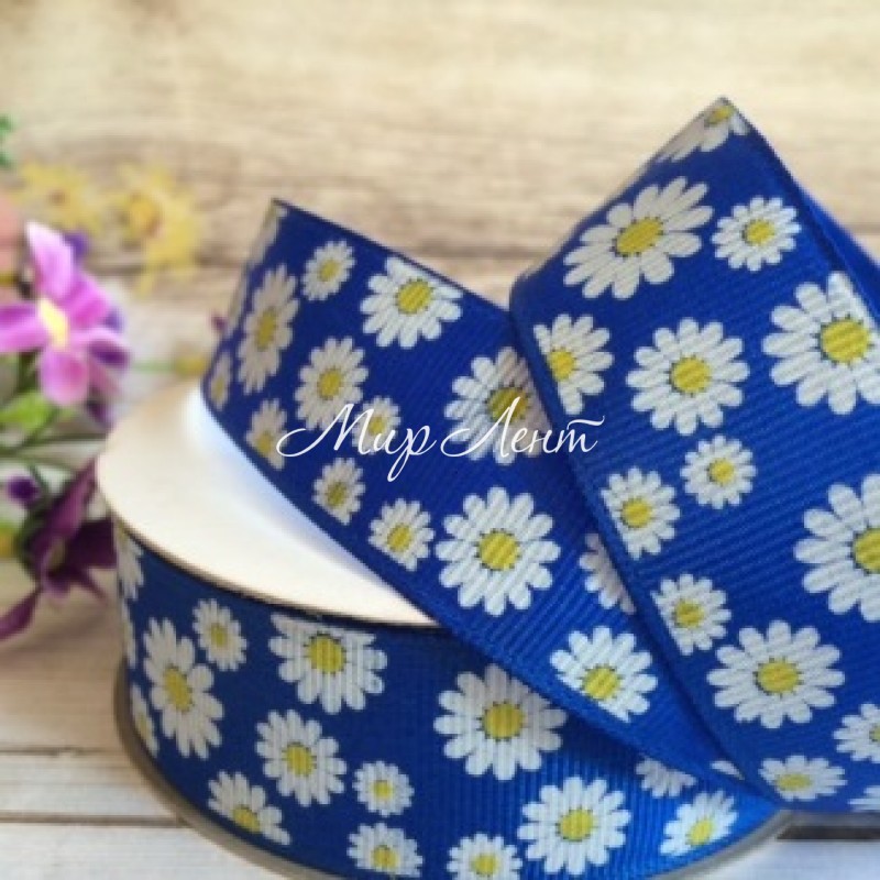 Репс 2,5 см, ромашка, темно-синій, рулон 23 м