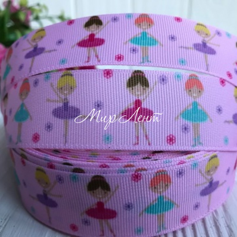 Репс 2,5 см, балерини на рожевому, рулон 23 м