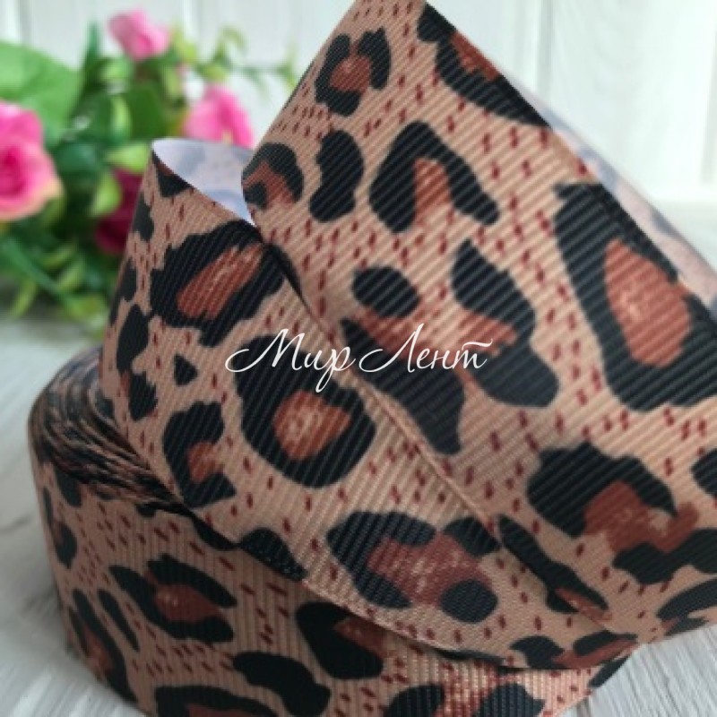 Репс 2,5 см, карамельний леопард, рулон 18 м