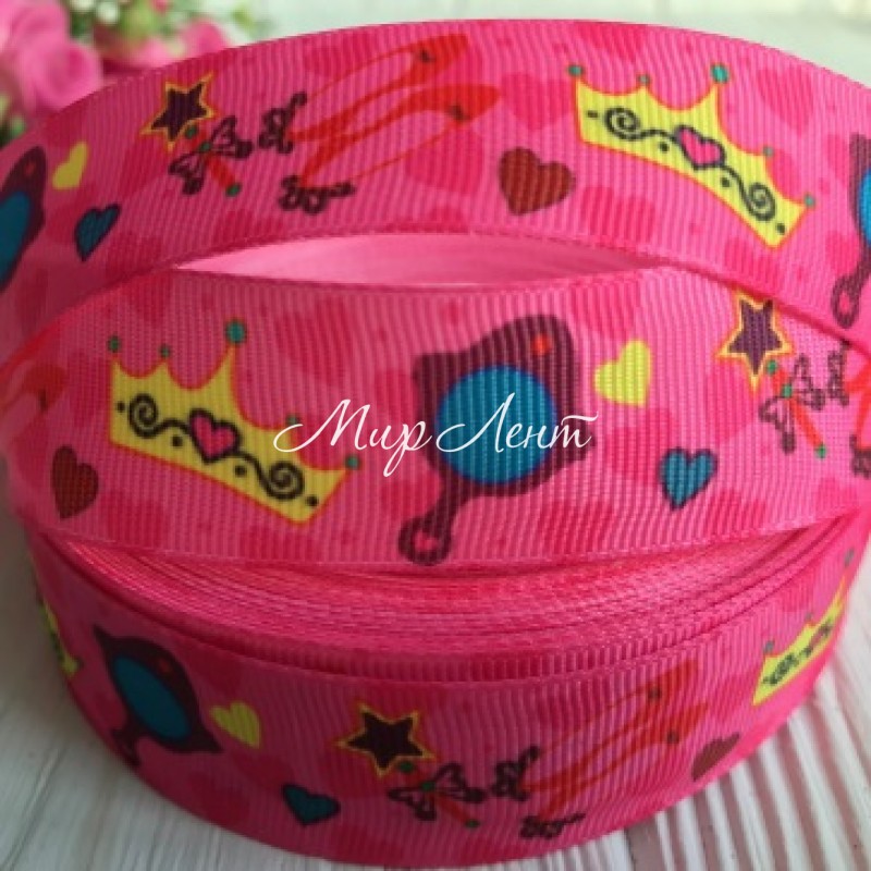 Репс 2,5 см, корона-дзеркало на малиновому, рулон 23 м