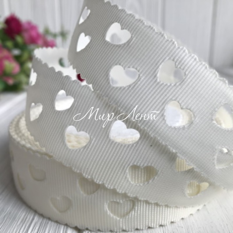 Репс 2,5 см, сердечка перфоровані, молочний, рулон 20 м