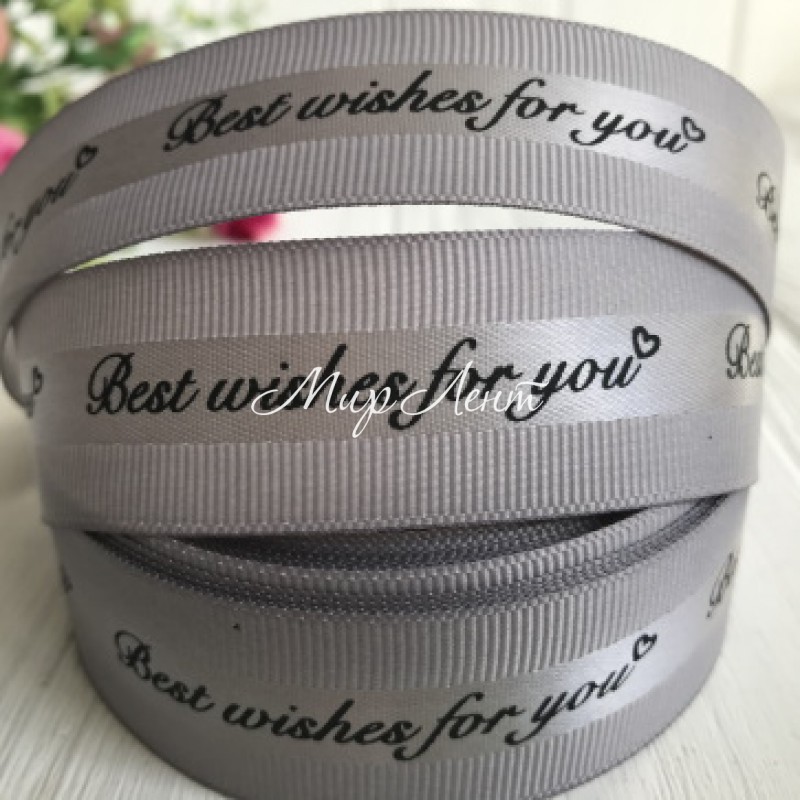 Репс Best wishes for you, 2,5 см, сірий, рулон 18 м