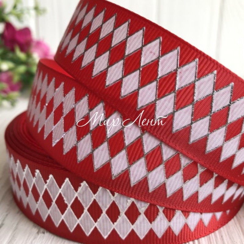 Репс з ромбами, 2,5 см, червоний, рулон 23 м
