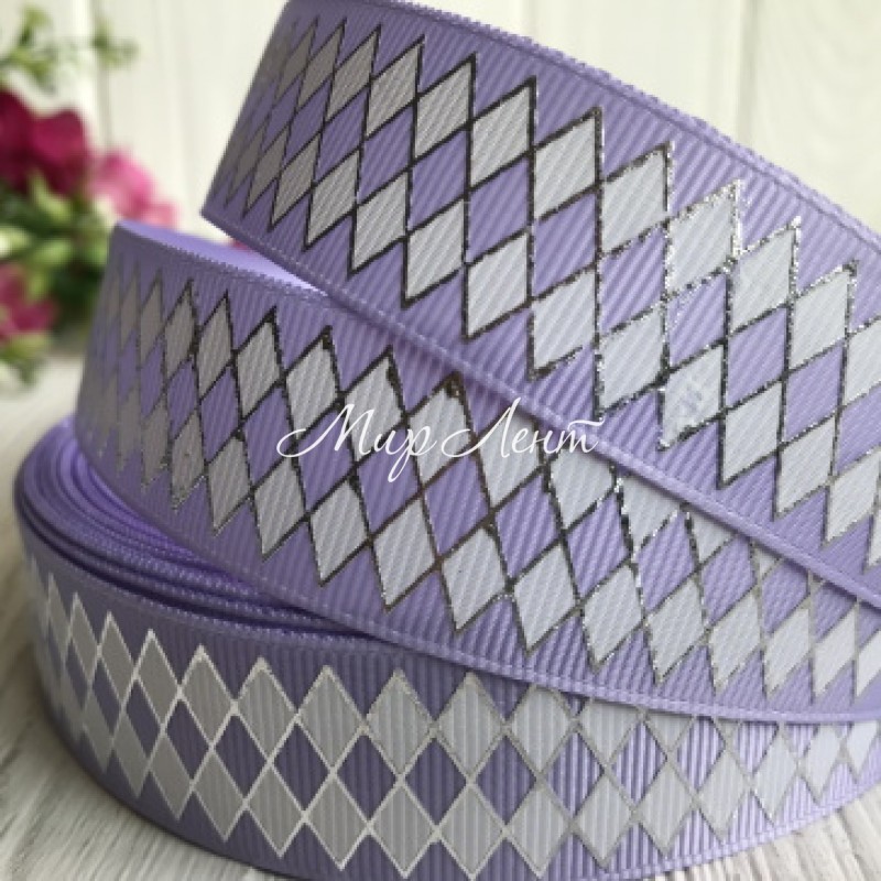Репс з ромбами, 2,5 см, ліловий, рулон 23 м