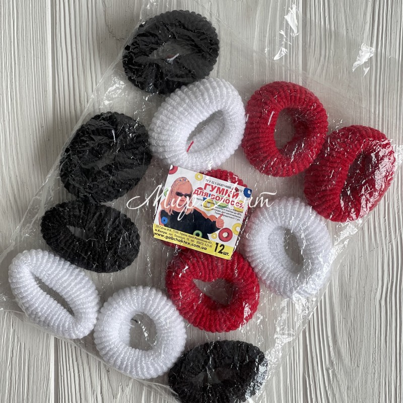 Резинка махрова, 6 см, червоно-біло-чорна, упаковка 12 шт.