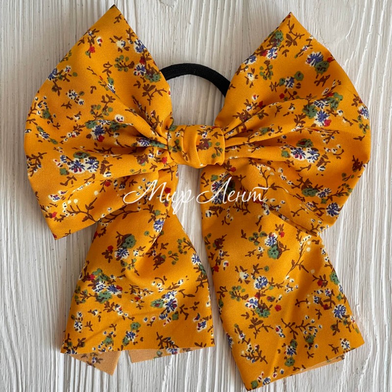 Резинка Твіллі великий бант в квіточку, 16 см, гірчична, шт.