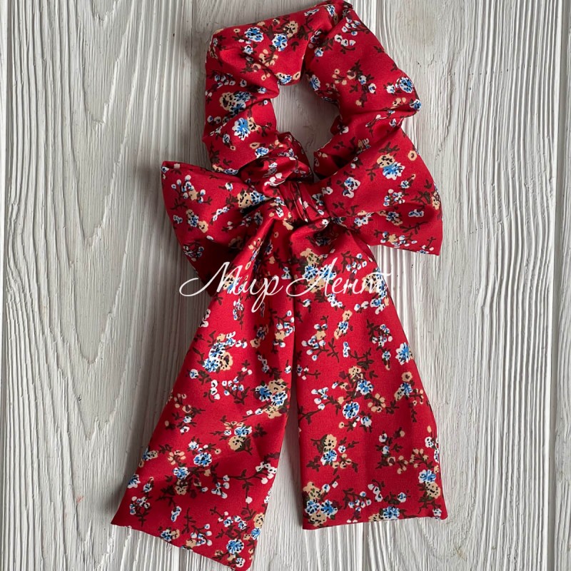 Резинка Твиллі жатка бант в квіточку, 27 см, червона, шт.