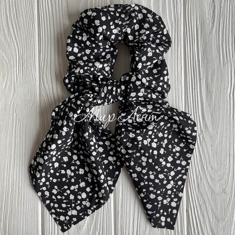 Резинка Твіллі жатка в квіточку, 27 см, чорна з білим, шт.