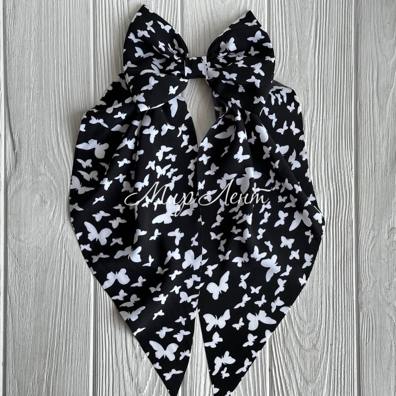 Резинка (качечка) великий бант хустка з метеликами, 14х35 см, чорна, шт.