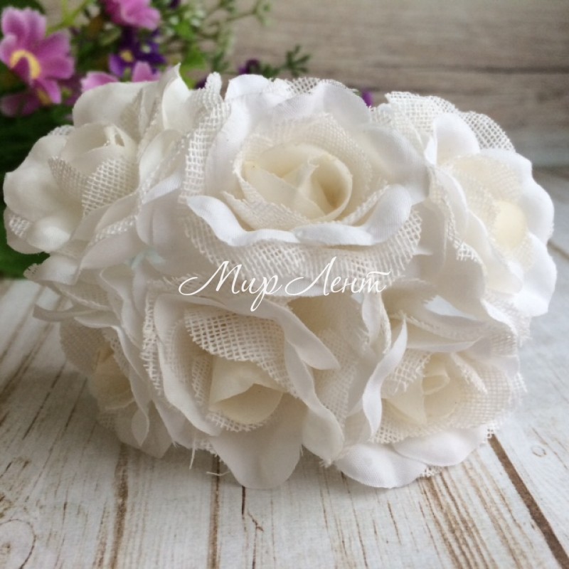 Роза з тканиною, 3,5 см, біла, упаковка 36 шт.