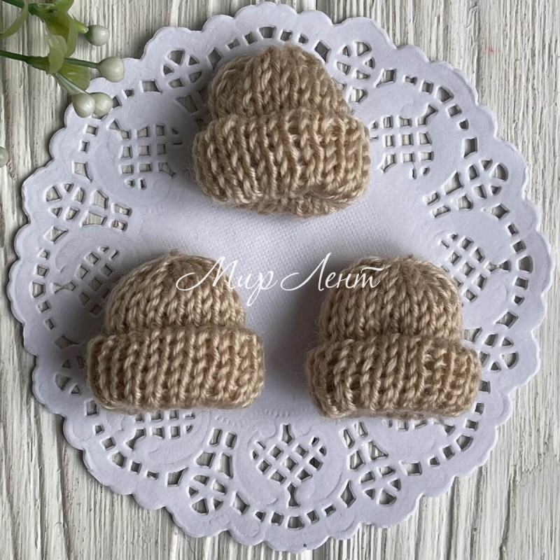 Шапочка в'язана, 4 см, бежева, упаковка 20 шт.