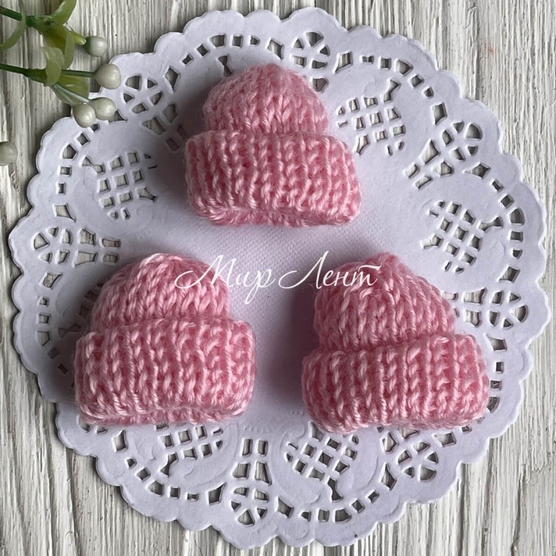Шапочка в'язана, 4 см, рожева, упаковка 20 шт.