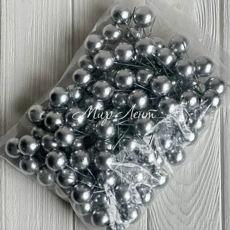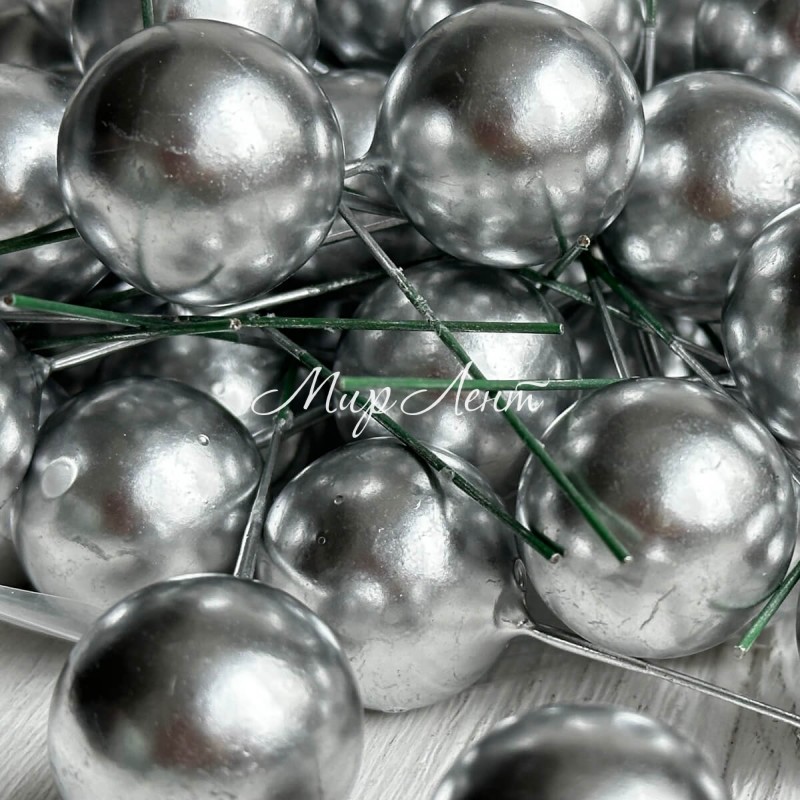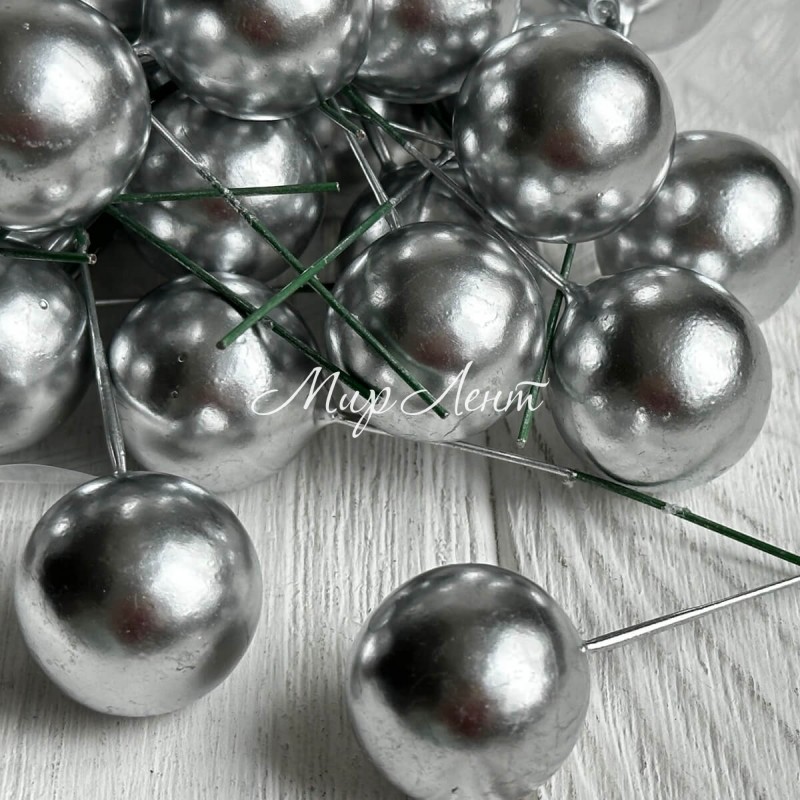 Кулька глянцева на проволоці, 25 мм, срібло, упаковка 100 шт.