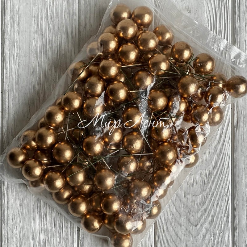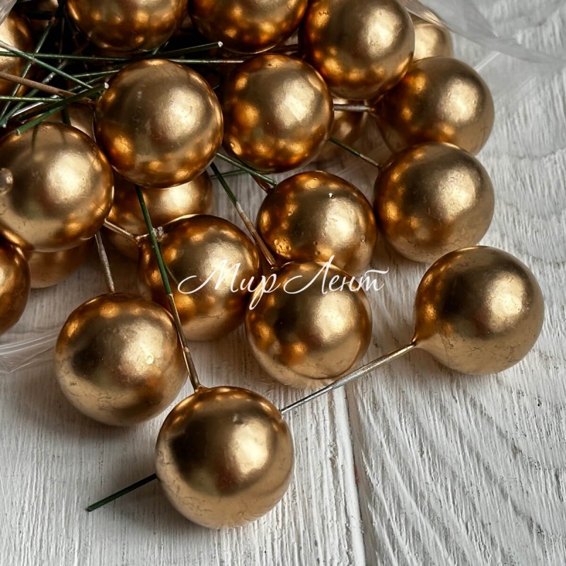 Кулька глянцева на проволоці, 25 мм, золота, упаковка 100 шт.