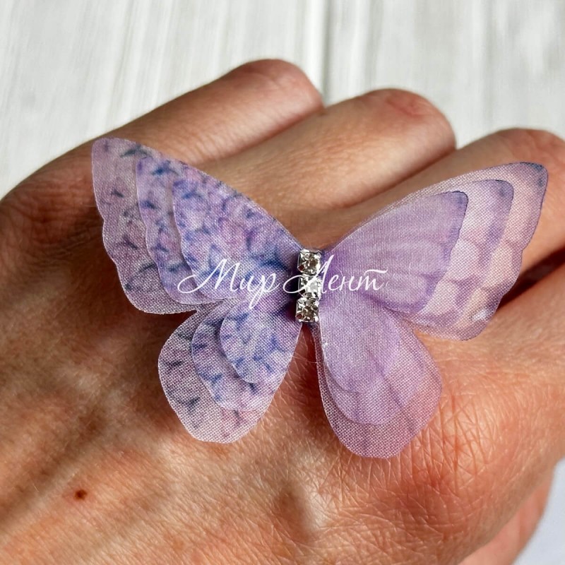 Шифоновий метелик тришаровий зі стразами (двосторонній), 5,4х4,2 см, лілово-фіолетовий, упаковка 25 шт.