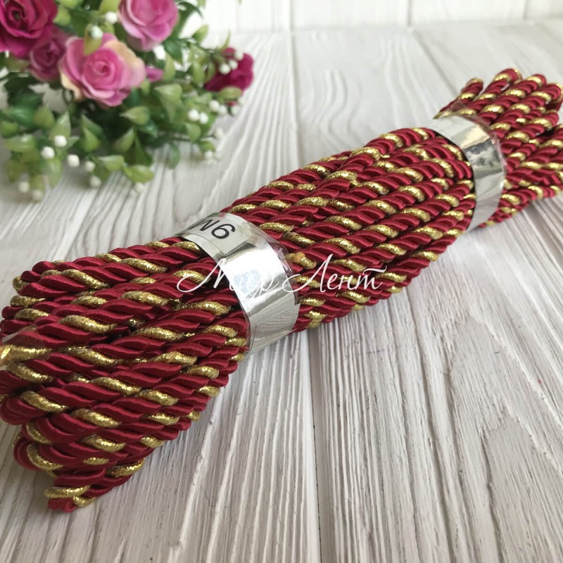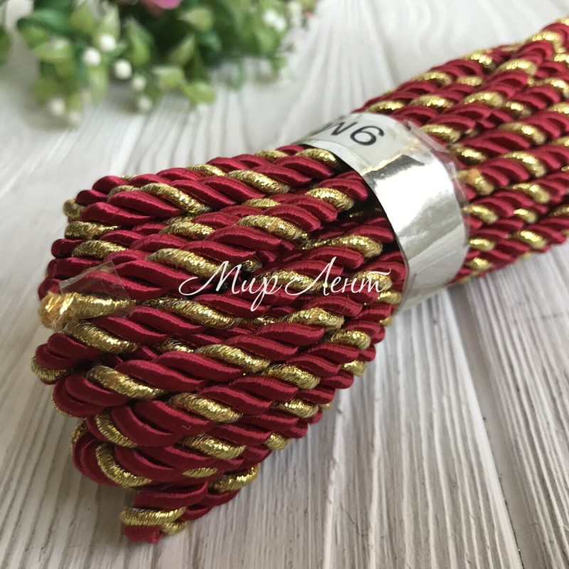 Шнур декоративний, 5 мм, бордовий з золотом, рулон 9 м