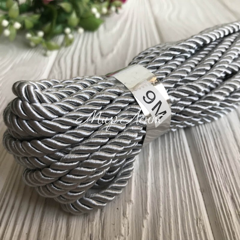 Шнур декоративний, 5 мм, сірий, рулон 9 м