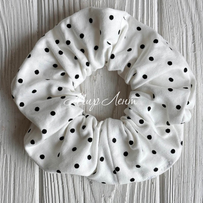 Скранч трикотаж горох, 12 см, білий в чорний горох, шт.