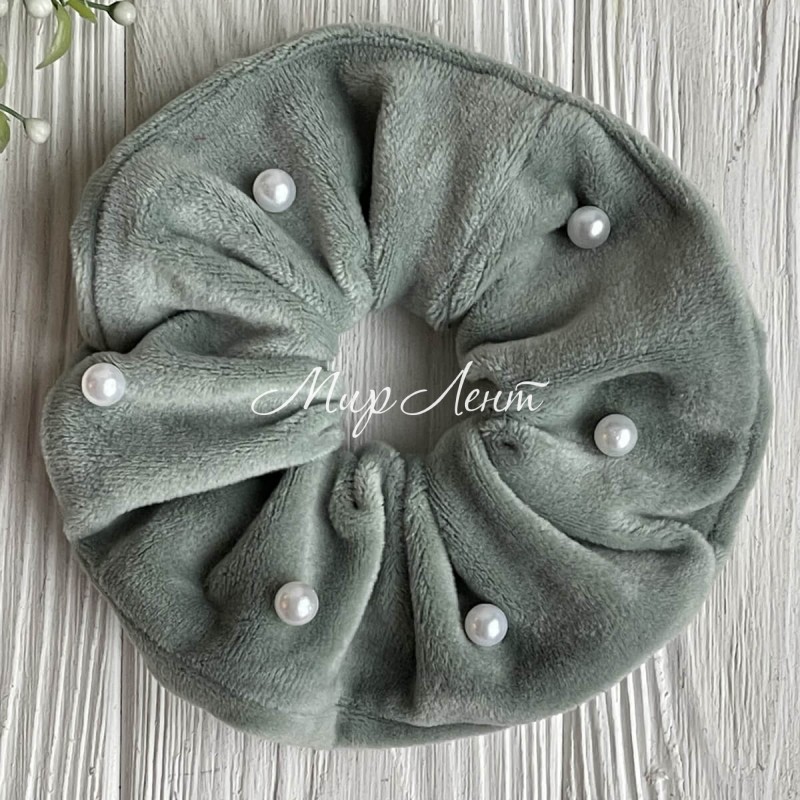 Скранч велюр із бусинками, 12 см, мятний, шт.