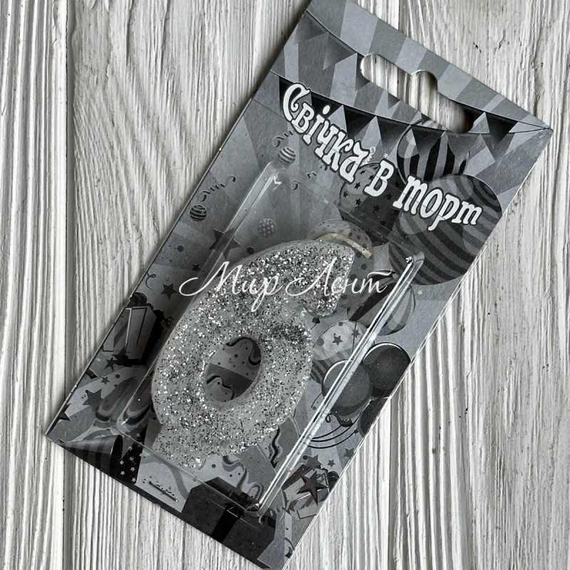 Свічка для торту (срібло), 7,8х3,8 см, цифра 6, шт.